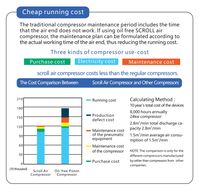 The compressor can be widely used in the industries of grain and oil, food, medicine, aquaculture, mechanical metallurgy, petrochemicals, textile printing and dyeing, electronic instruments, transportation and telecommunications, scientific research institutes and universities which need high purification air sources and is also suitable for general power source.